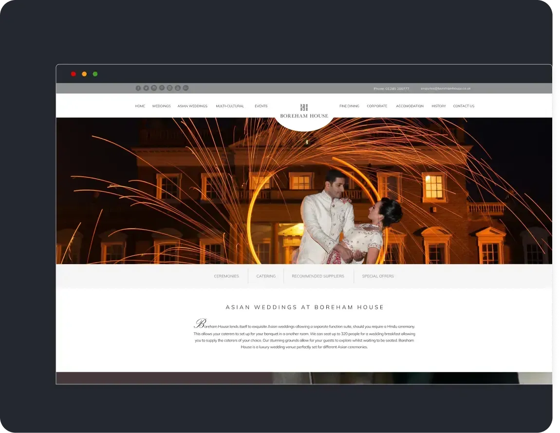 We create websites for wedding venues that are optimised to attract high-quality leads, convert interest into enquiries, and support both your short-term goals and long-term success.